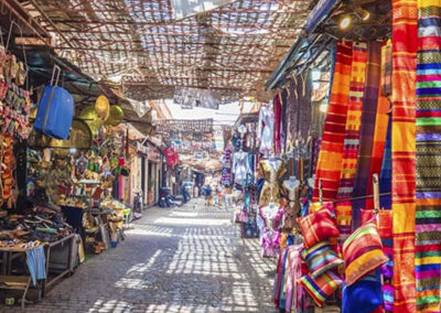 Travel from Ouarzazate to Marrakech, stopping at the historic Ait Ben Haddou Kasbah, a UNESCO World Heritage Site and famous film location. Pass briefly by Ouarzazate’s movie studios before crossing the Tizi N’Tichka pass in the High Atlas Mountains. Arrive in Marrakech by afternoon and enjoy a free evening to explore.