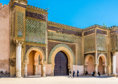 Depart Chefchaouen in the morning, traveling south through the Rif Mountains. Stop at the ancient Roman city of Volubilis, a UNESCO World Heritage site with impressive ruins and mosaics. Continue to Meknes to admire the grand Bab el-Mansour gates and Moulay Ismail Tombs. After lunch, arrive in Fez for an overnight stay in the Medina.