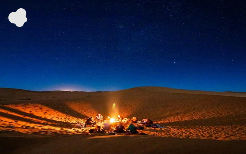 At the camp, you will be welcomed with Moroccan tea, followed by a delicious dinner under the stars. Afterward, enjoy traditional Berber drumming around the campfire.