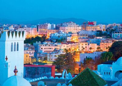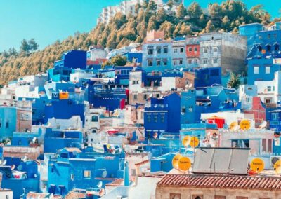 Upon arrival in Tangier by ferry or flight, you’ll meet your driver to begin the journey. Driving through the Rif Mountains, you’ll enjoy sweeping views before reaching Chefchaouen, famously known as the “Blue Pearl” of Morocco. Nestled in the mountains, this town enchants visitors with its maze of blue-washed houses, cobbled alleys, and artistic charm. Stroll through Place Outa el Hammam, visit the Kasbah and Ethnographic Museum, and admire the Great Mosque’s unique octagonal minaret. Evening free to relax in the serene mountain atmosphere.